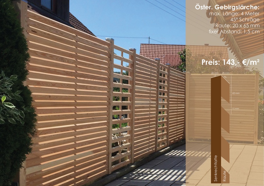 Beim CrossZaun ist Ihr Wunschmaß unser Standard. Es können besondere Gegebenheiten berücksichtigt werden (z.B. Aussparungen, Schrägen, verschiedene Höhen und vieles mehr). Sie lassen uns Ihre Wünsche wissen und wir fertigen den CrossZaun nach Ihren Vorstellungen.